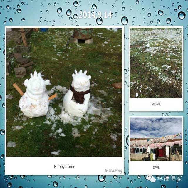 清晨,淅淅沥沥的小雨慢慢转成雨加雪,最后干脆变成了大雪。院子里雪白雪白的,像是给大地母亲献上的哈达。可是这天气像善变的孩子的脸,一会儿阳光又出来了,照在身上暖洋洋的。看,这是雪后孩子们在院子里堆的小雪人,可爱吧!